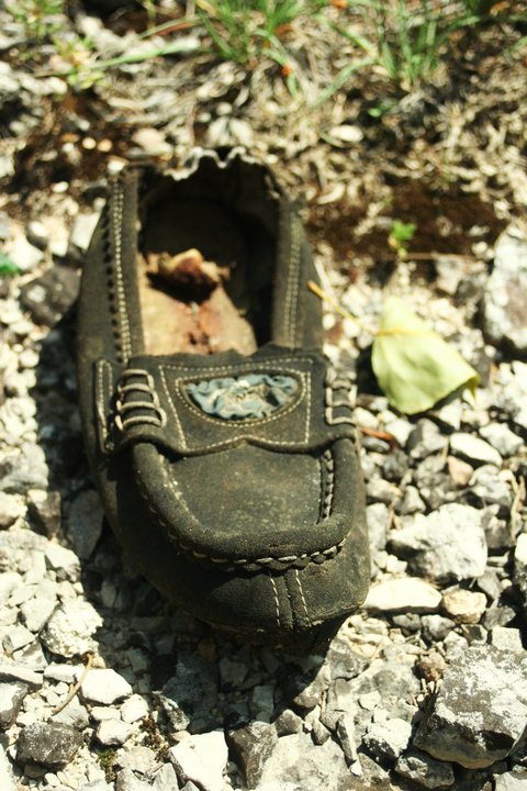 walking with a tortoise, pigeon steps in shoes with battered mirrors