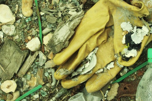 The debris somehow becomes celebration; phenomenon in apparition; the concrete becomes a display cabinet for marvels; the languid liquids unnamed; discarded plastic glass for such poisons; a rats temperament. There are signs that our consumerist demands are already overlapping; ikea lamps now lay in this playground for the disaffected. The crochet, once a favourite item; now rests in mildew; costumes for the late night menageries.