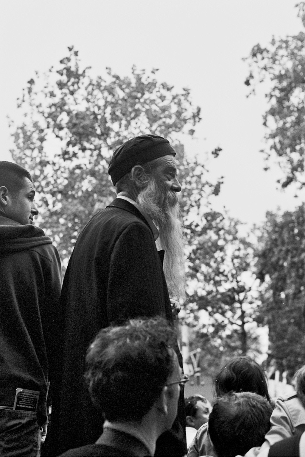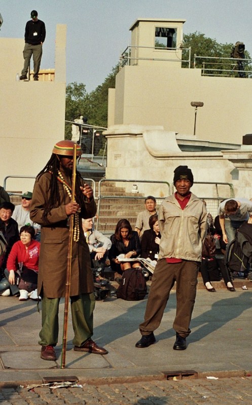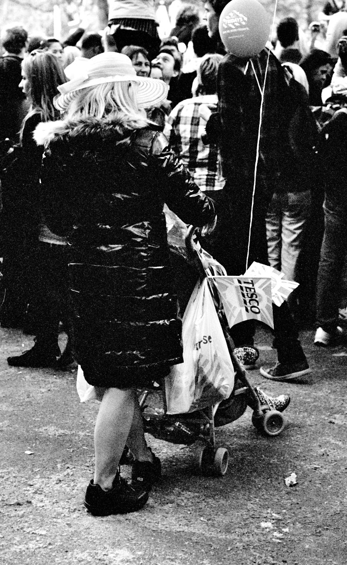 Sifting now through a mountain of images, these faces, glimpsed only in a moment, become narrative, The man who sleeps on the grass, the noble eyes of the old man, the two blondes, the lady with the tesco flags, the tribes man in central London. Each portray with their body autobiographical fragments of their context, culture.