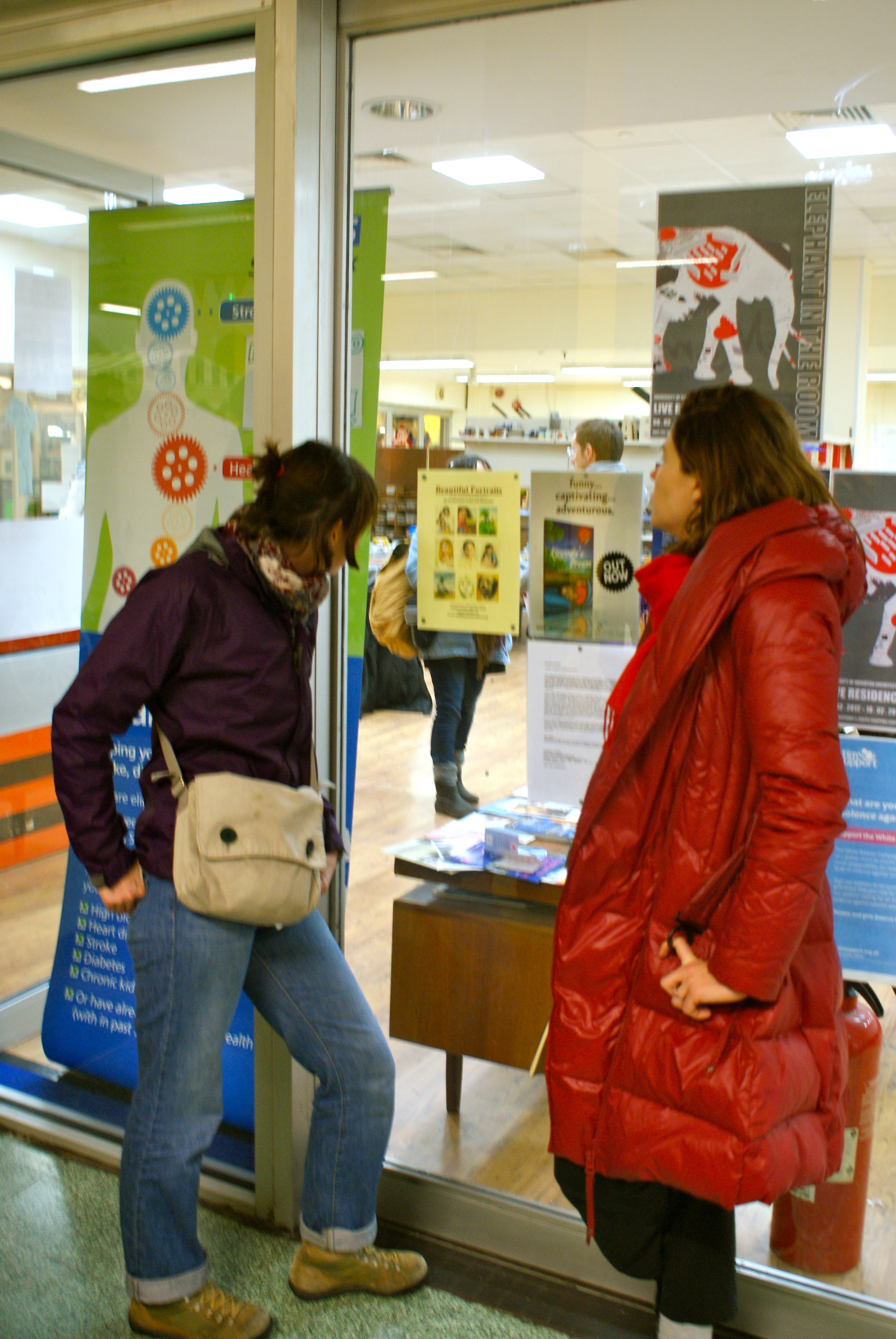 Walking first to the shopping centre. Sharing ideas of performance. To the centre of engaged architectural production, actually a rather bleak empty shop with strip lighting and shared with a mosaic workshop and some massage chairs. Architects plans hung side ways in small font and if one bends and contorts ideas can be briefly explored.