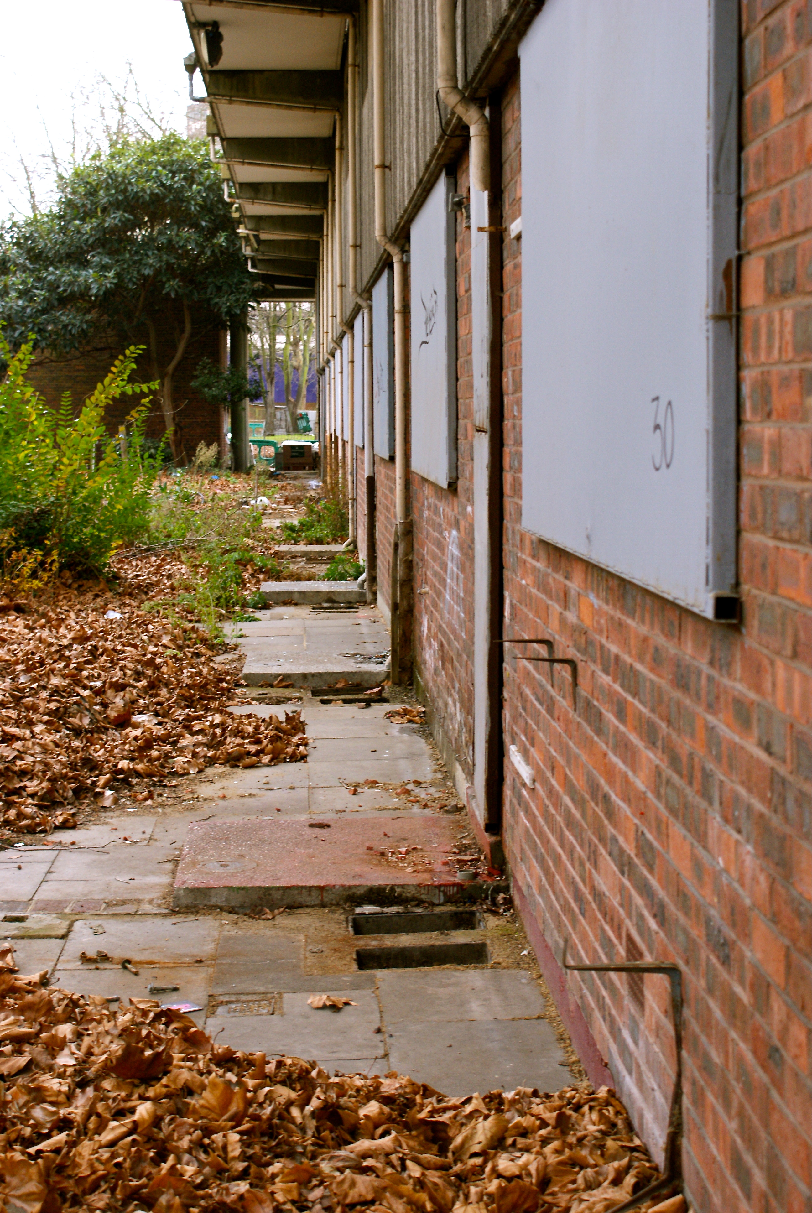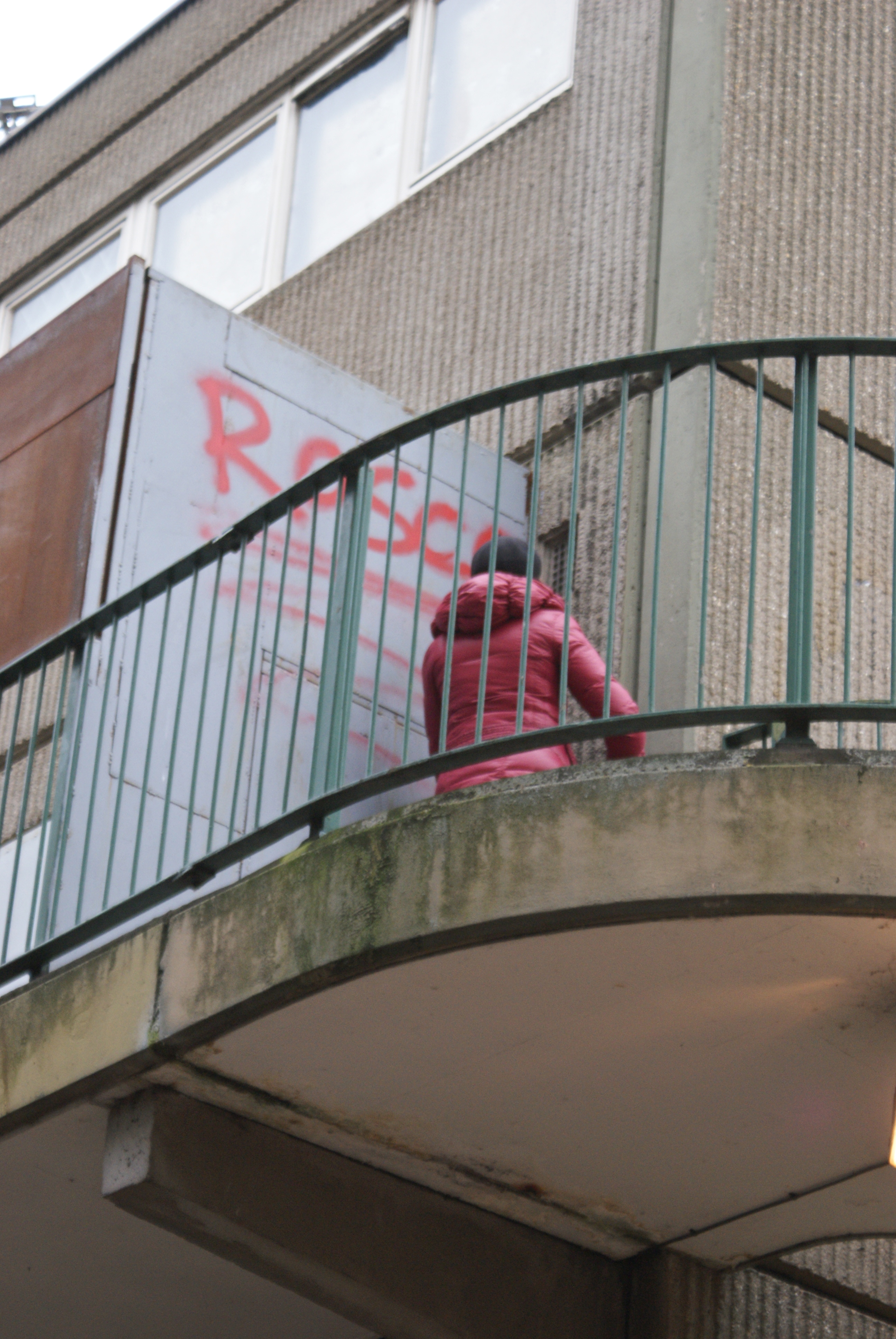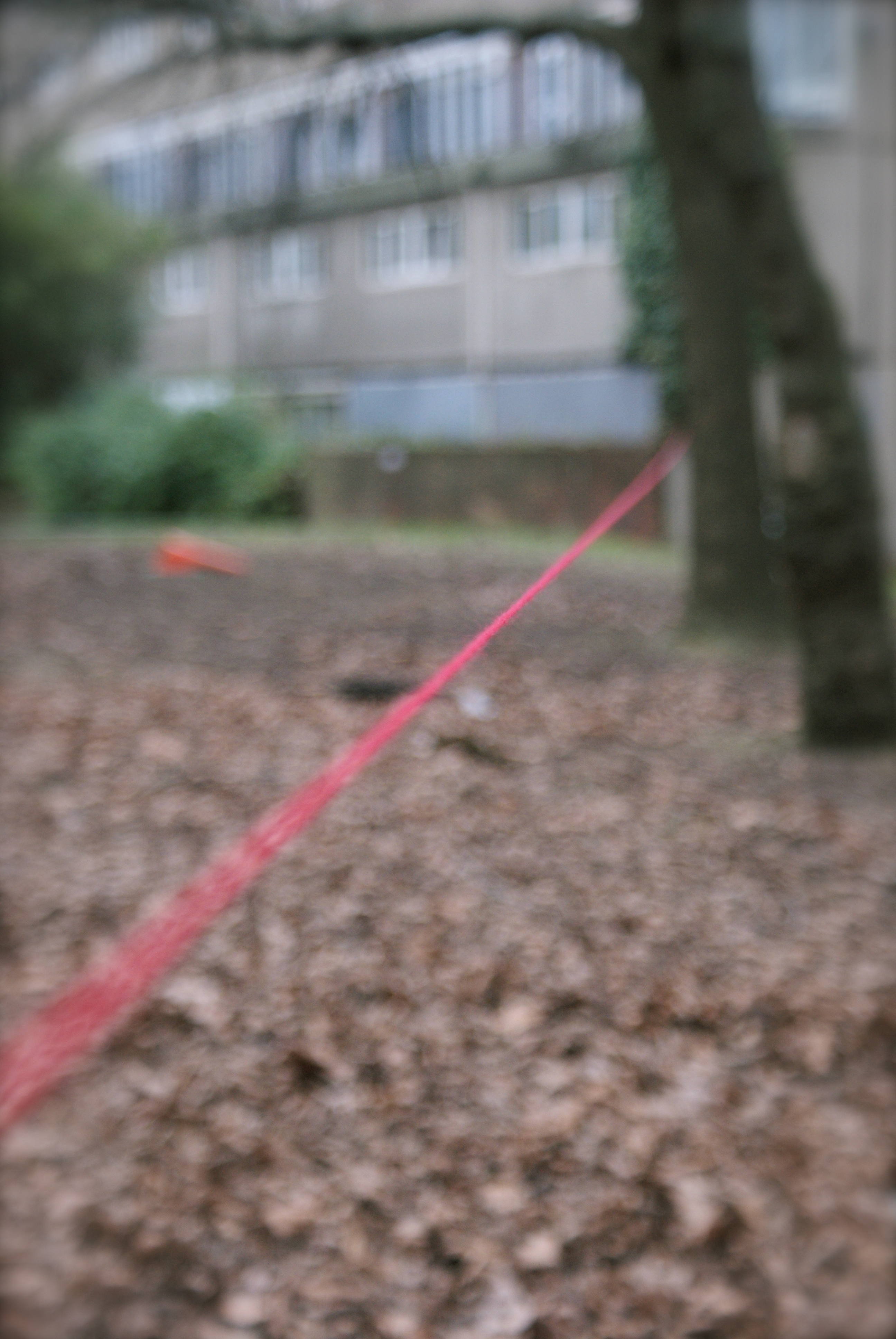 Walking then to the heygate estate. A calm as we enter. Not silence but a diminuendo. The plastic bags which litter the trees seem almost as celebration, the newly laid pavement to this maze is littered with a map of a new pizza menu. Each direction the rows of empty flats play with the eyes.