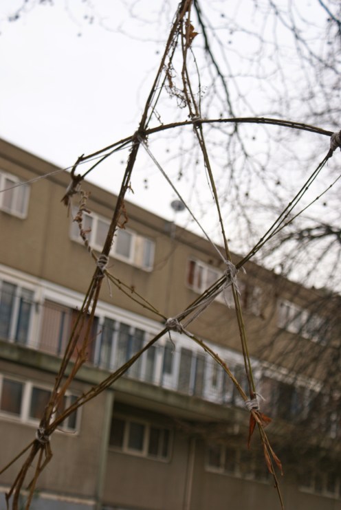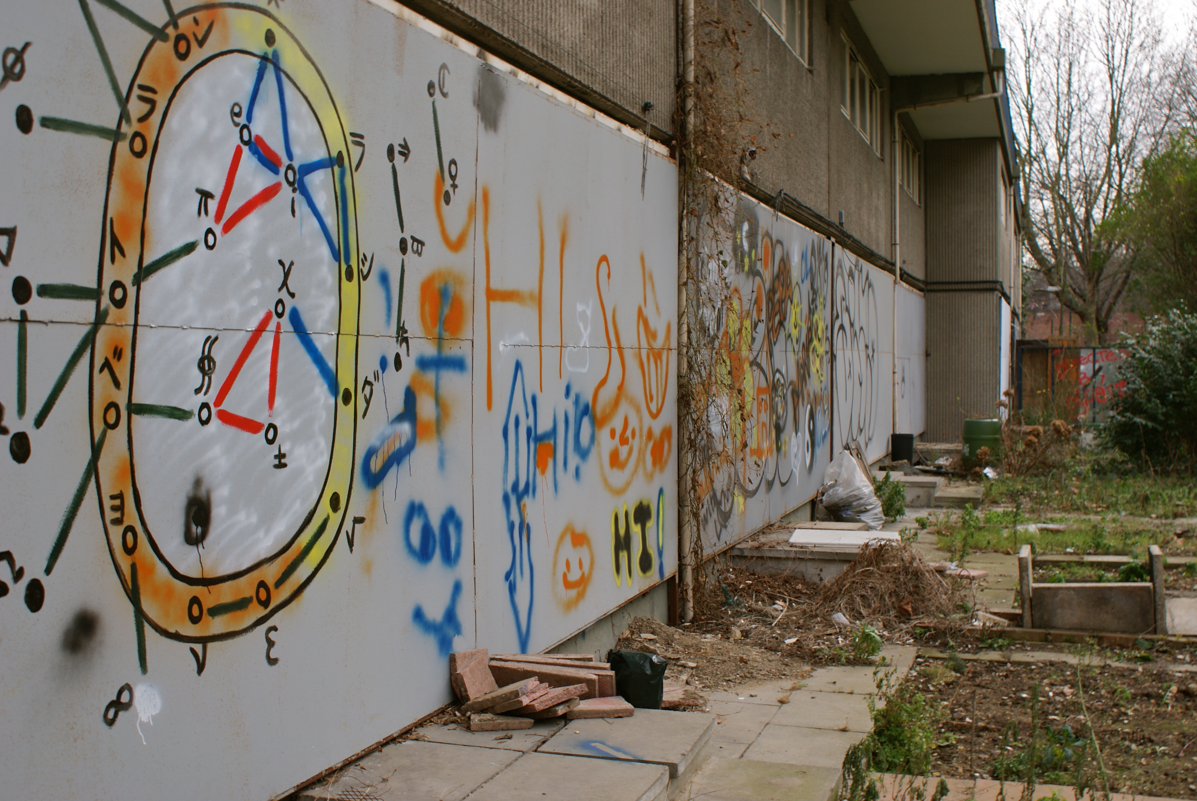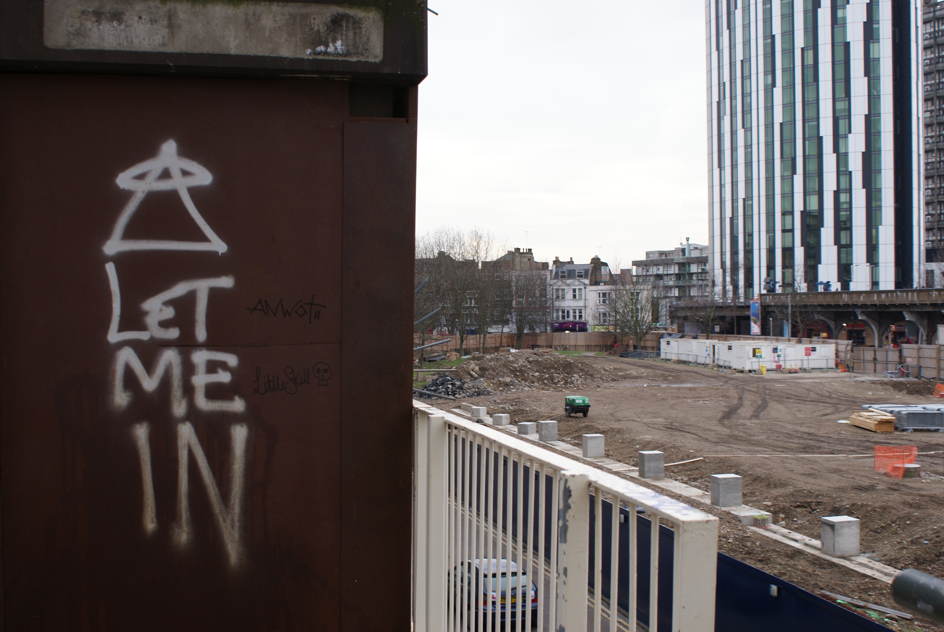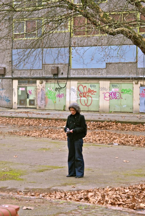 Walking then to the heygate estate. A calm as we enter. Not silence but a diminuendo. The plastic bags which litter the trees seem almost as celebration, the newly laid pavement to this maze is littered with a map of a new pizza menu. Each direction the rows of empty flats play with the eyes.