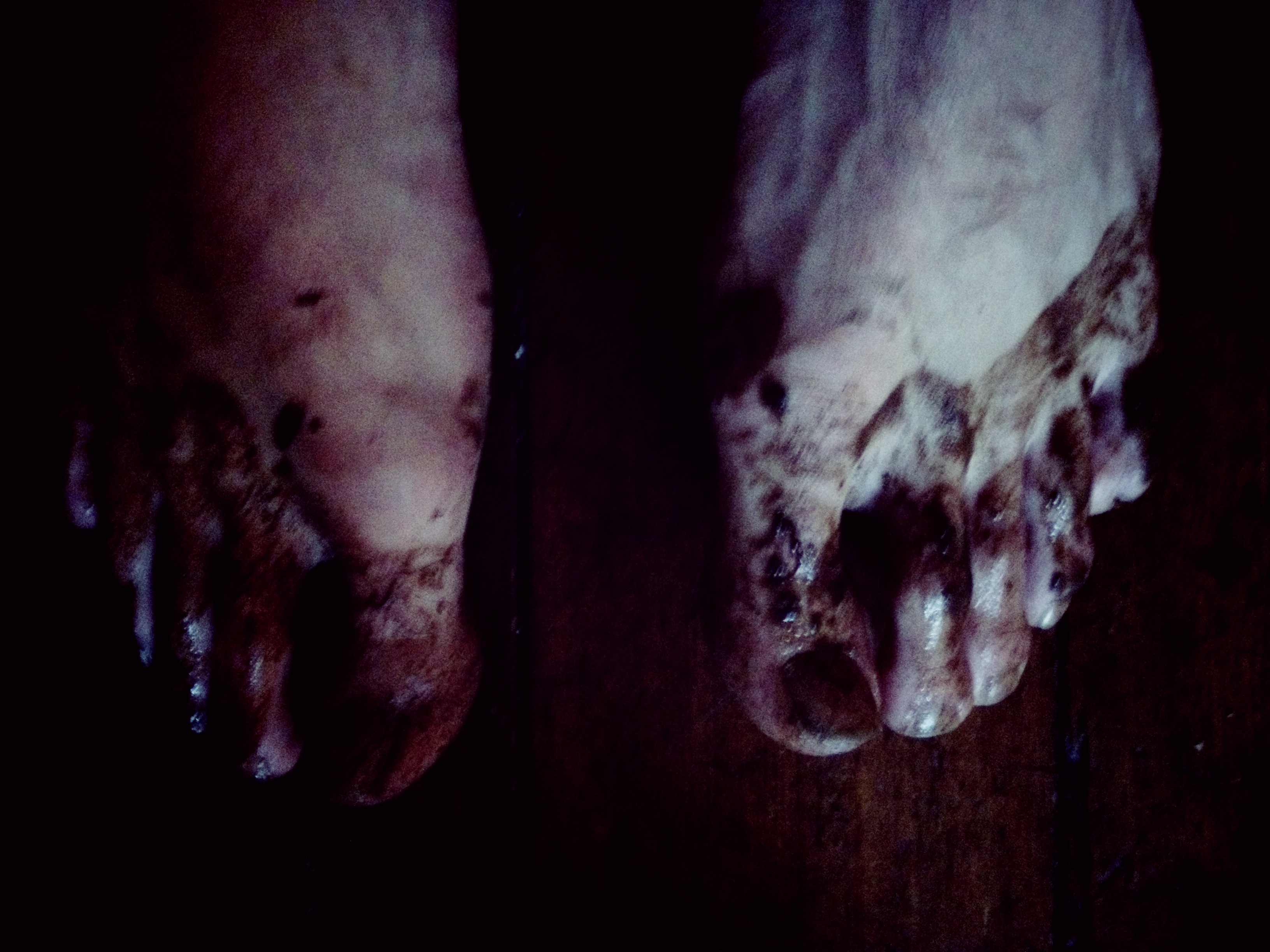 His feet enter to the earth.