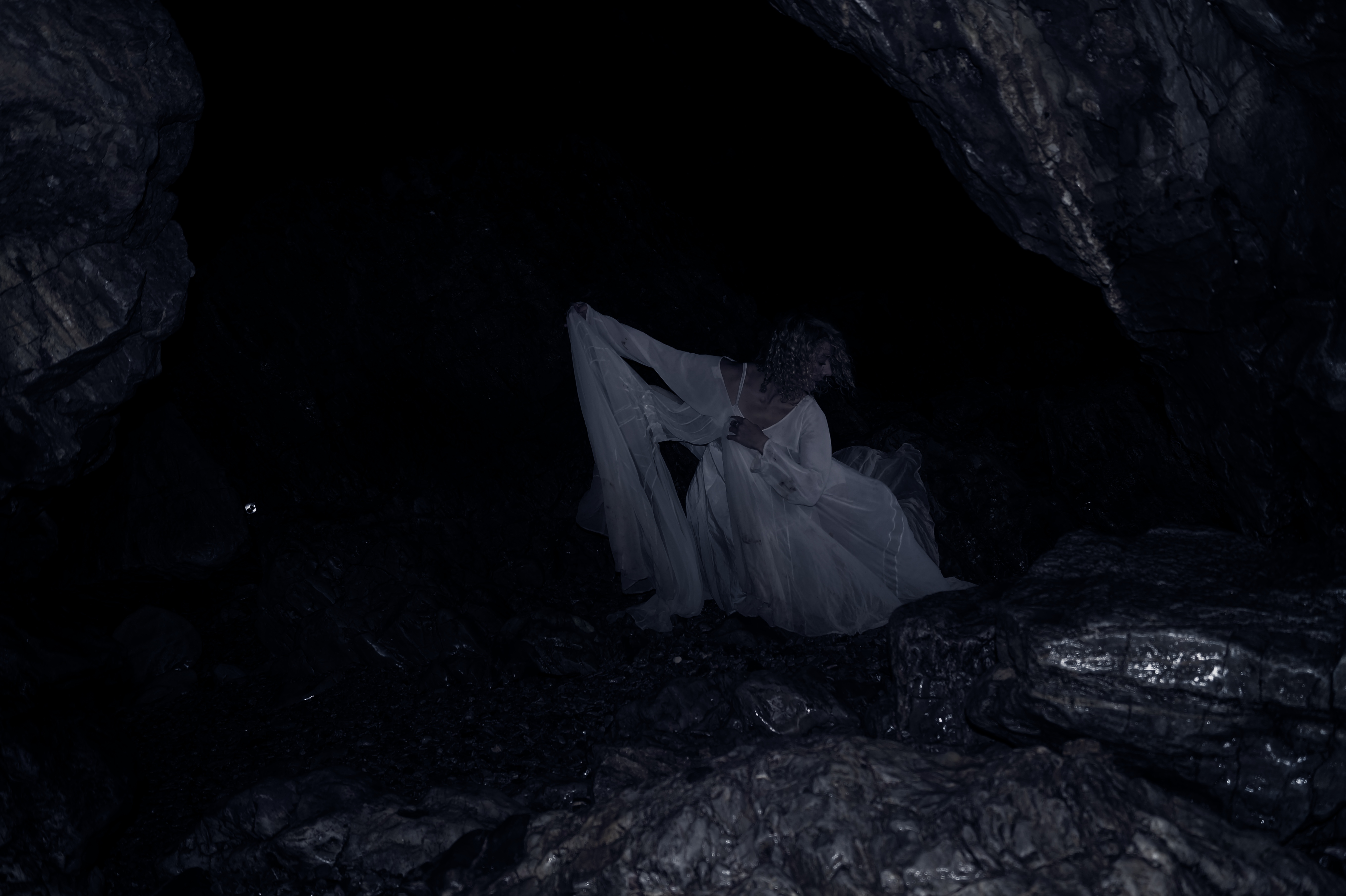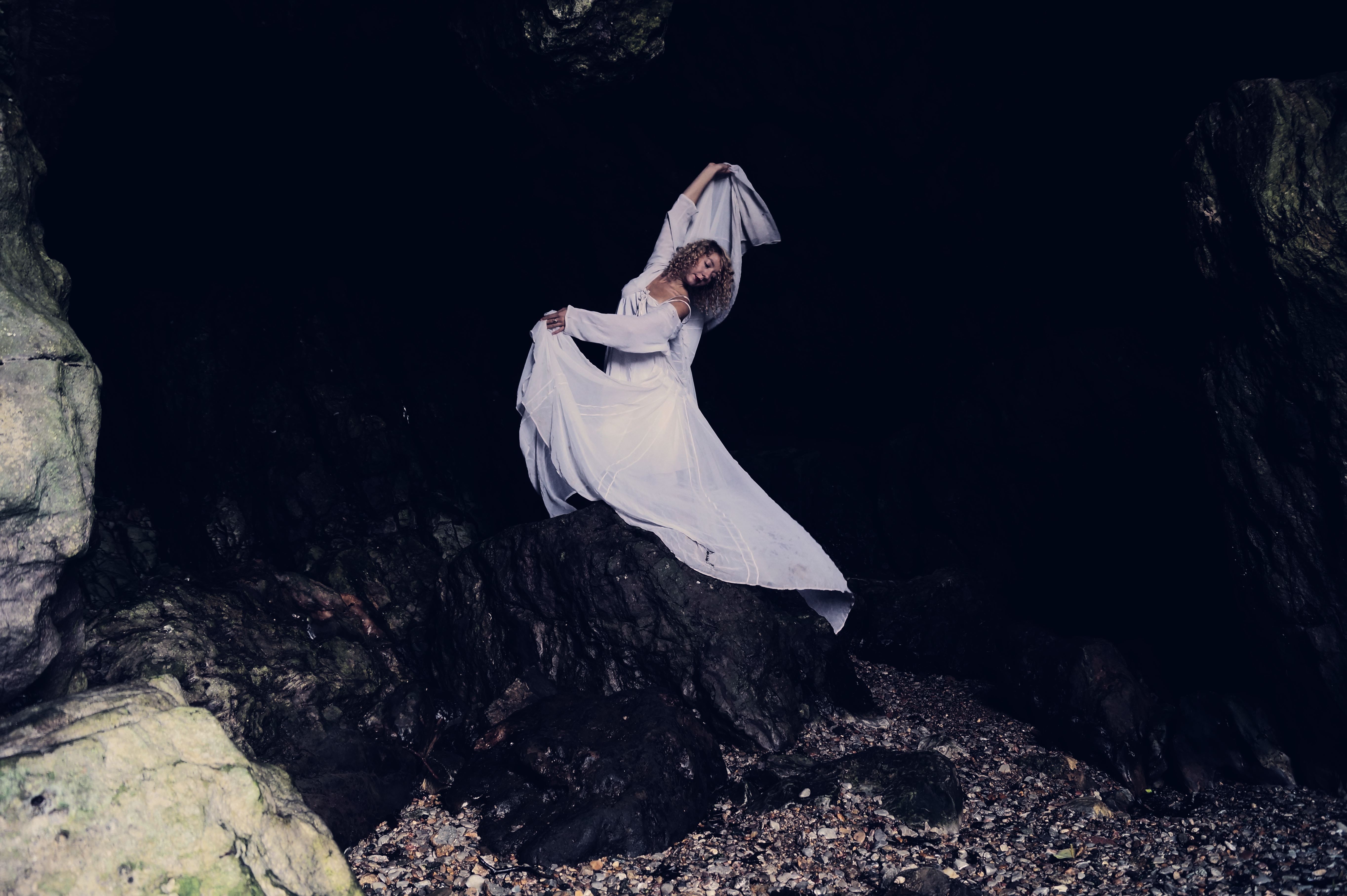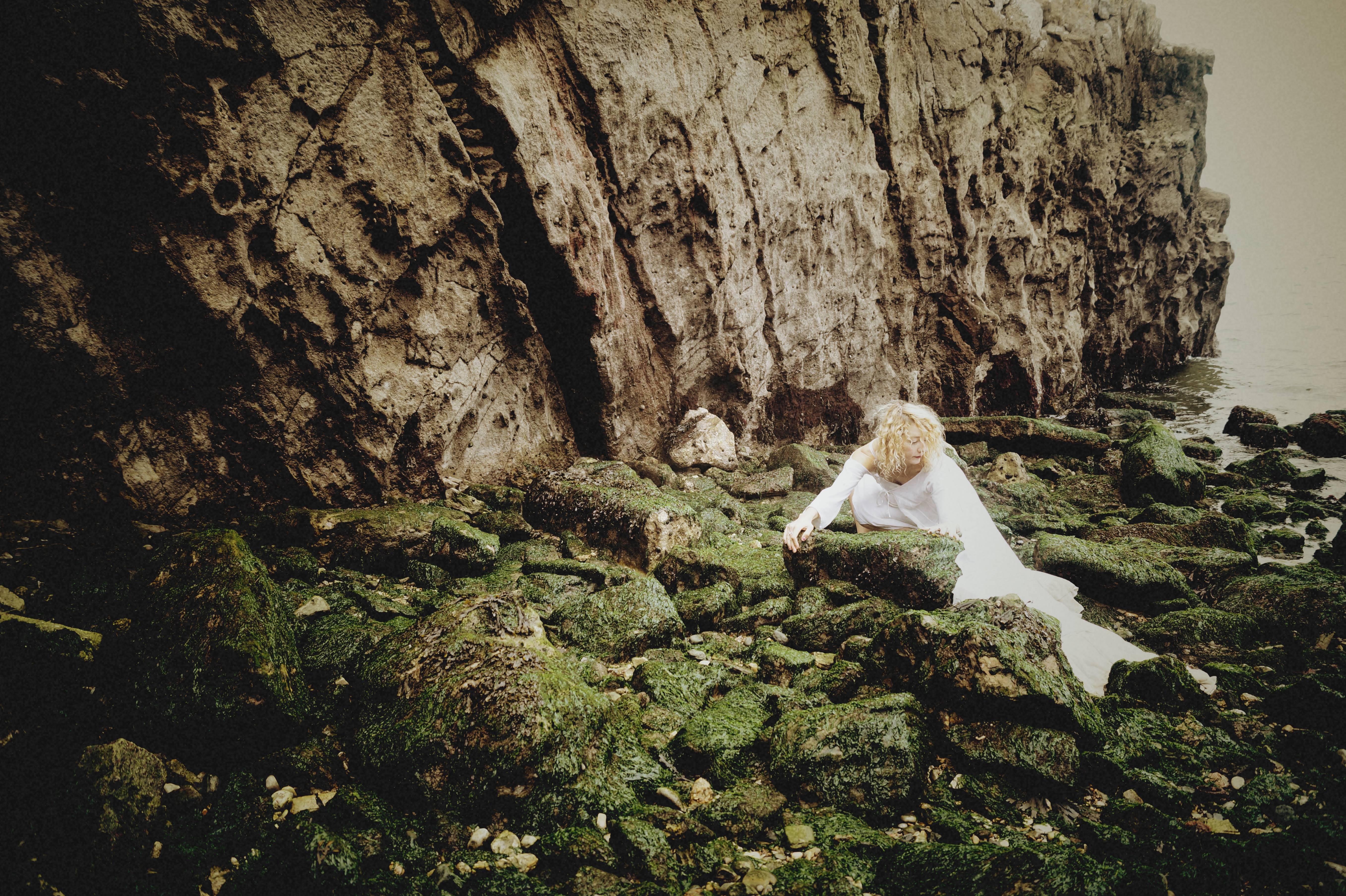 The seagull has watched the whole thing, the lady is wet now, sodden and cold and the tree floats on the waves. Maybe she cries a little. The sea gull cannot tell as the rain comes now. The lady or girl, or human retreats back into the caves and tries to become a fish so that she can join the tree.